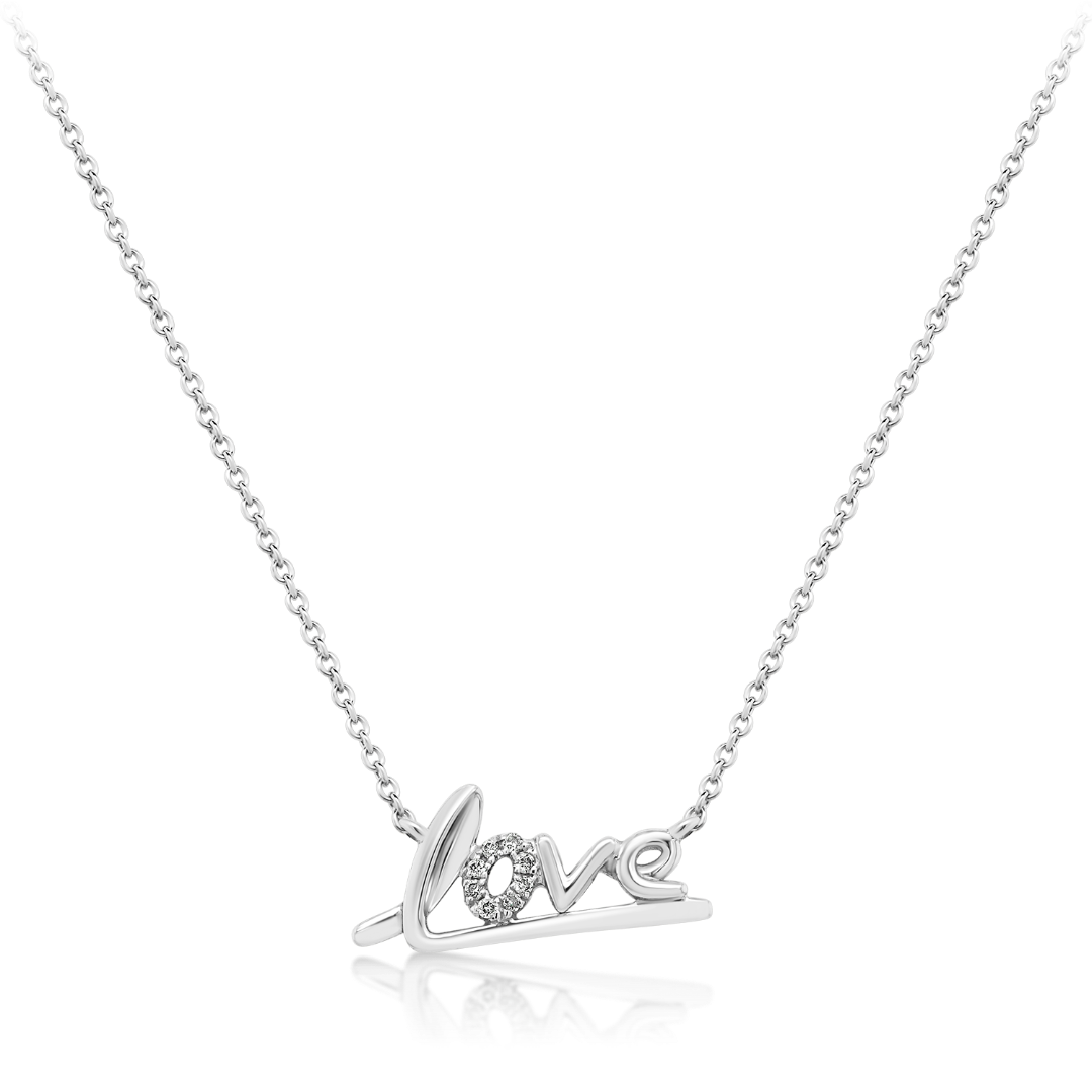 Lanț din aur alb de 18K și pandantiv 'Love' cu Diamante Round Brilliant de 0.03ct.