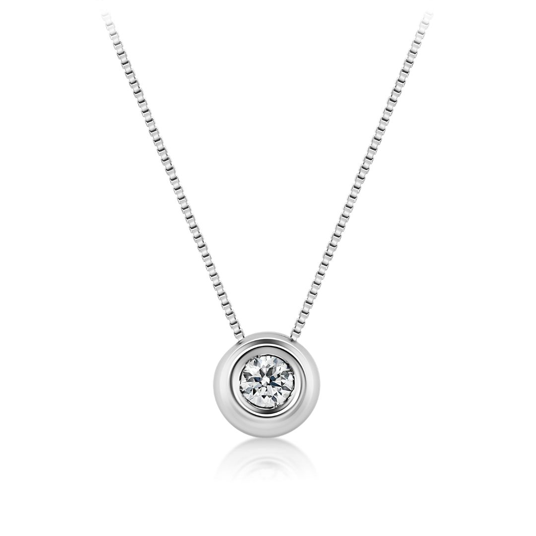 Lanț din aur alb de 18K și pandantiv cu un Diamant natural Round Brilliant.