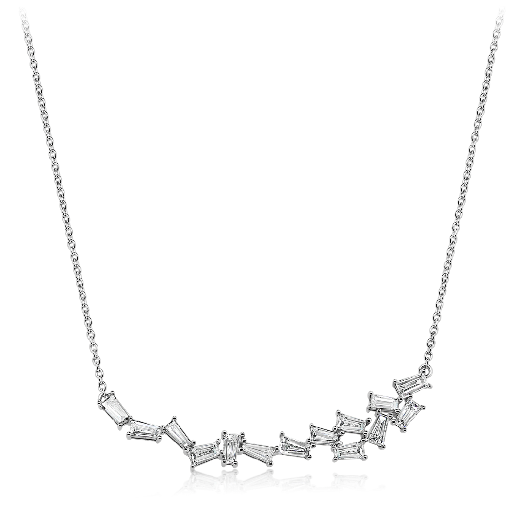 Lanț din aur alb de 18K și pandantiv încrustat cu 14 Diamante Tapered Baguette de 0.93ct.