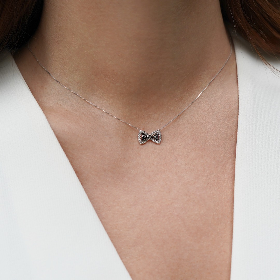 Colier din aur alb de 18K cu Diamante naturale negre și incolore.