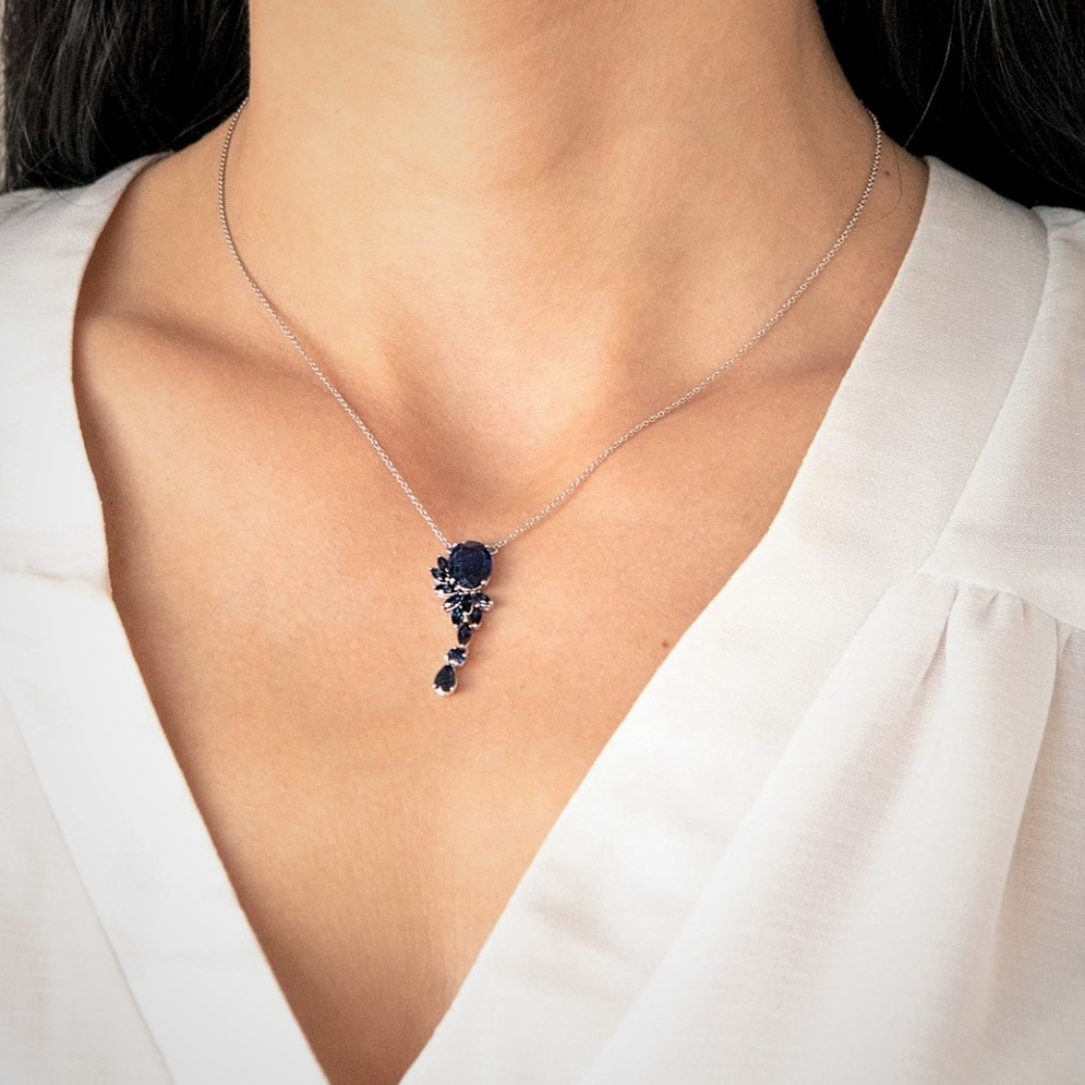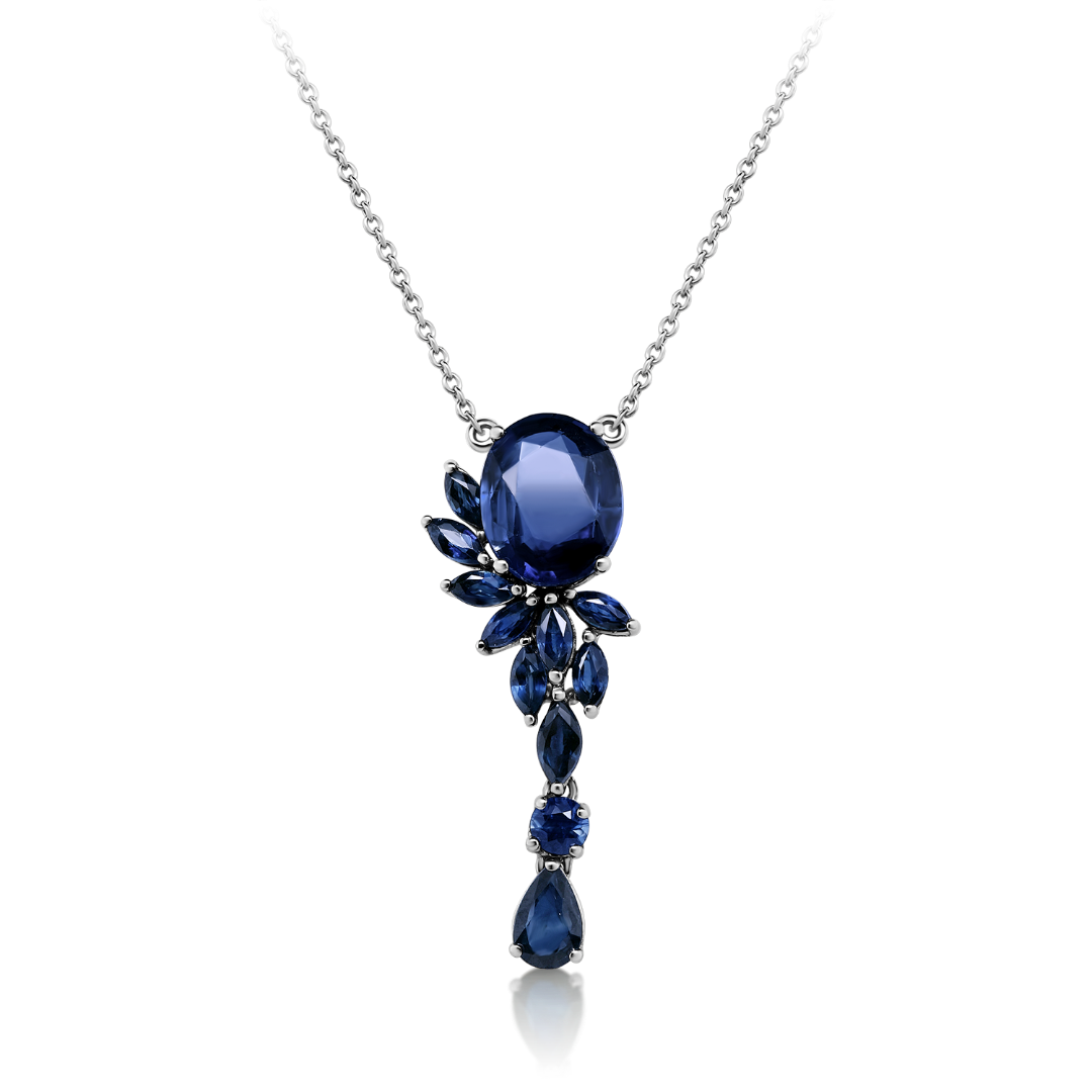 Colier din aur alb de 18K, încrustat cu 11 Safire albastre de 1.60ct. și o piatră Kianit de 2.94ct.