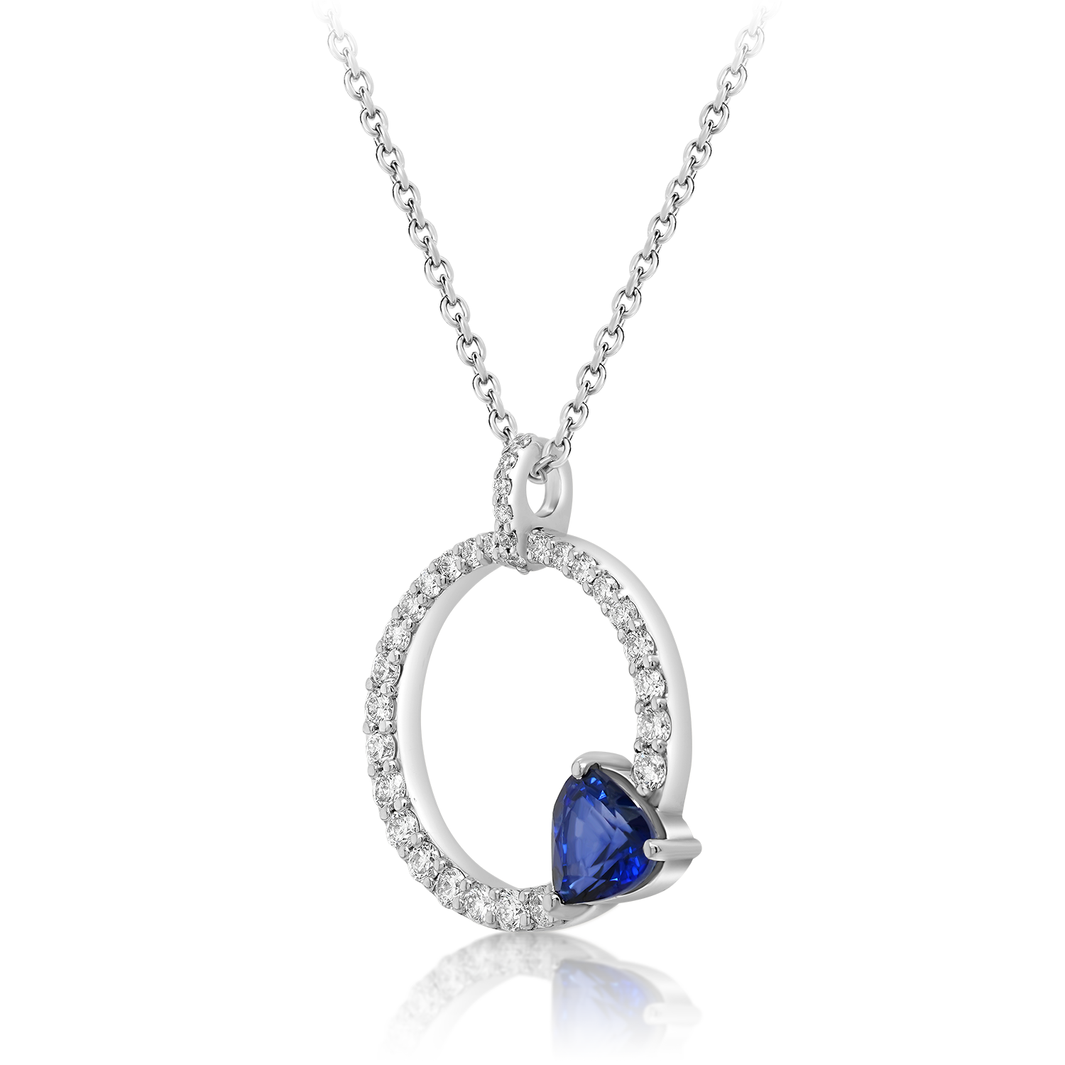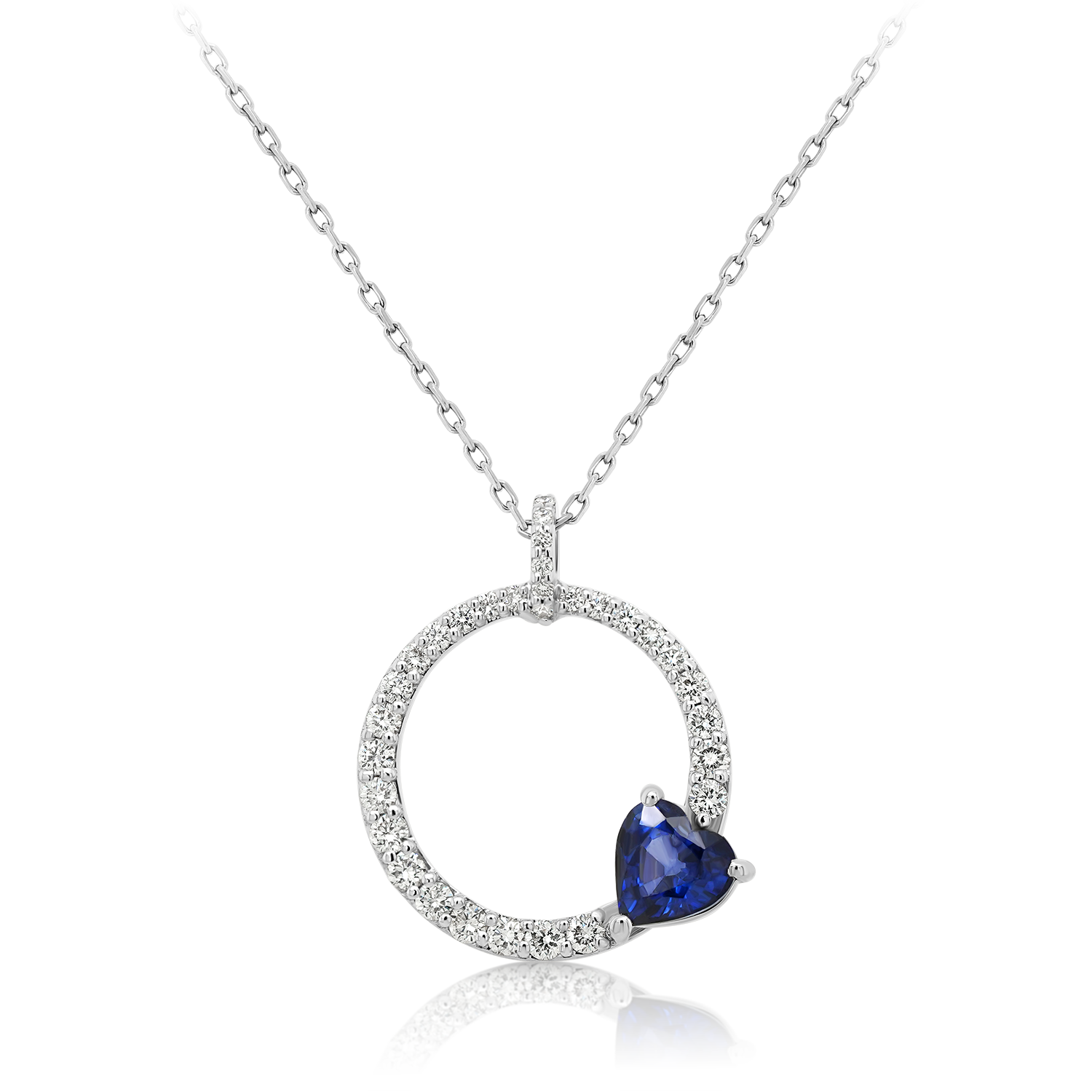 Colier din aur alb de 18K și pandantiv cu Safir și Diamante naturale
