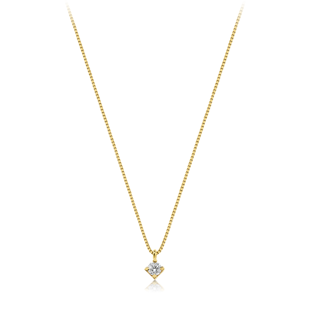 Lanț din aur galben de 18K și pandantiv cu un Diamant Round Brilliant.