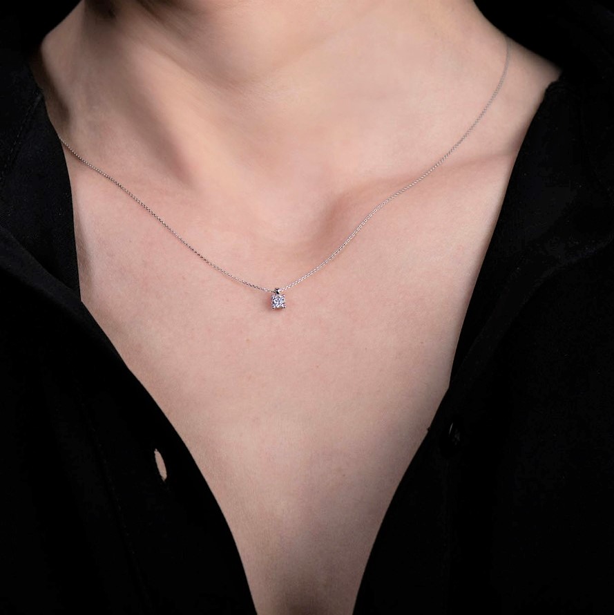 Colier din aur alb de 14K și pandantiv cu un Diamant de 0.304ct.