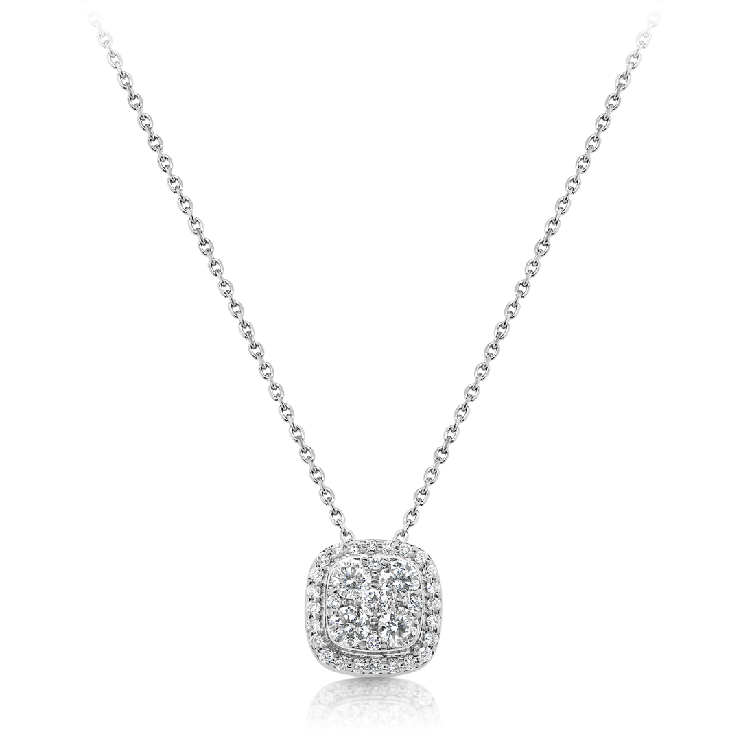 Lanț din aur alb de 14K și pandantiv încrustat cu 33 de Diamante naturale Round Brilliant de 0.484ct.