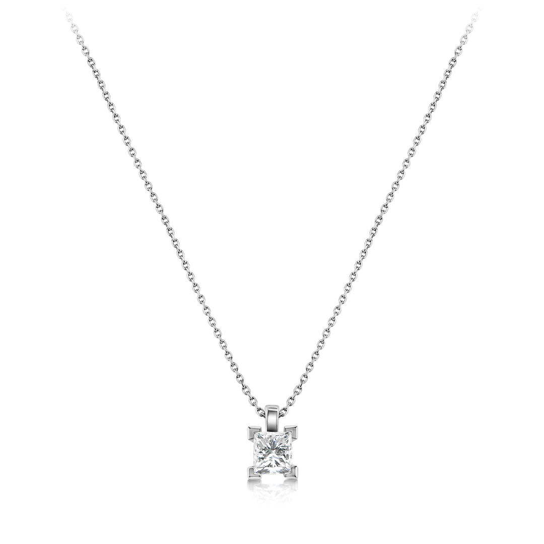 Lanț din aur alb de 14K și pandantiv cu un Diamant Princess de 0.302ct.