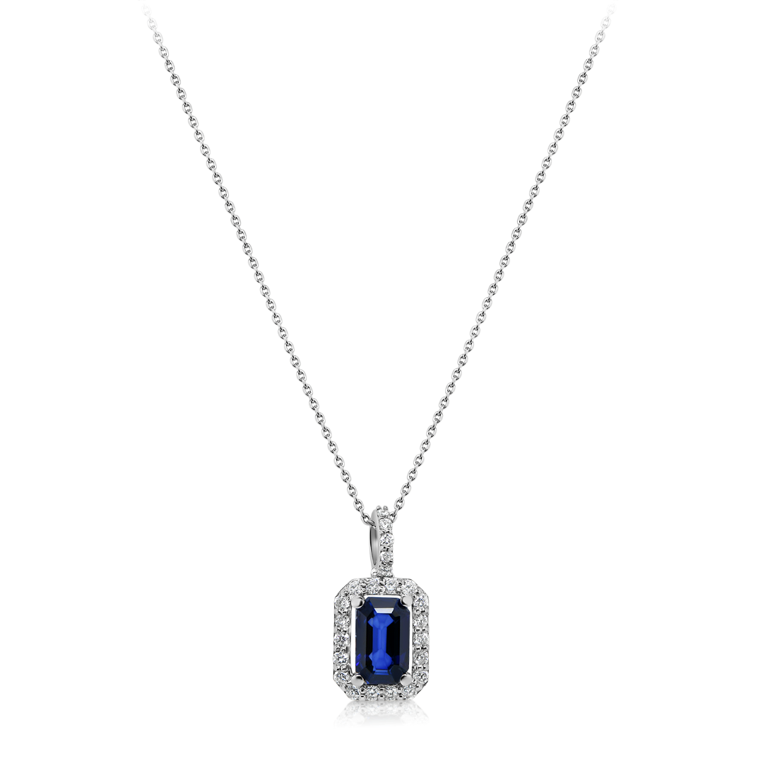 Colier din aur alb de 14K cu Diamante si Safir