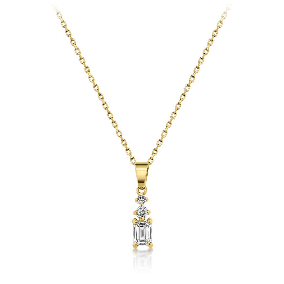 Lanț din aur galben de 18K și pandantiv încrustat cu două Diamante Round Brilliant de 0.03ct.și un Diamant Emerald cut de 0.019ct.