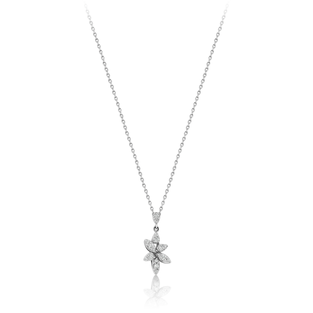 Colier din aur alb de 18K, cu pandantiv tip floare încrustat cu Diamante de 0.17ct.