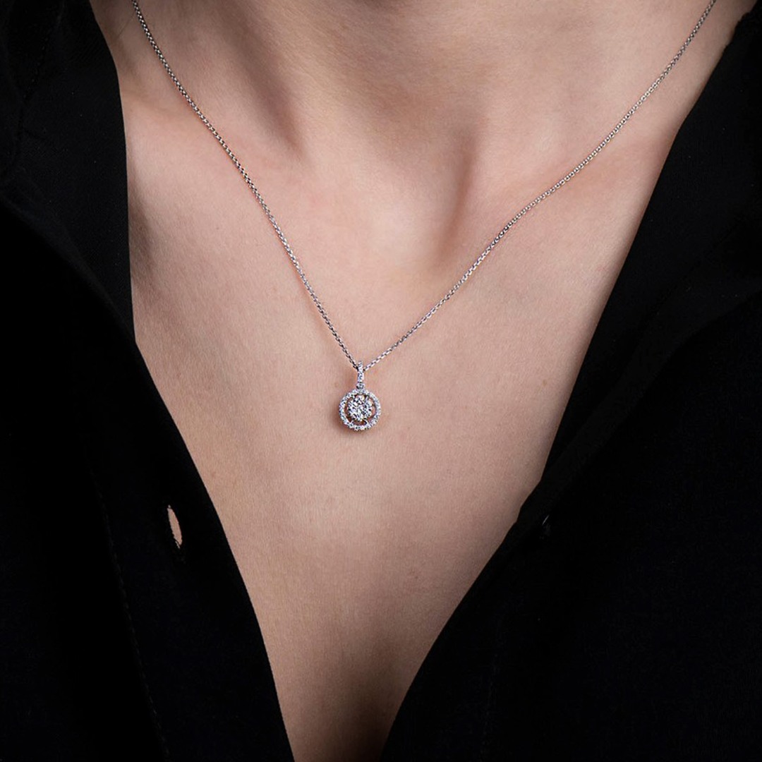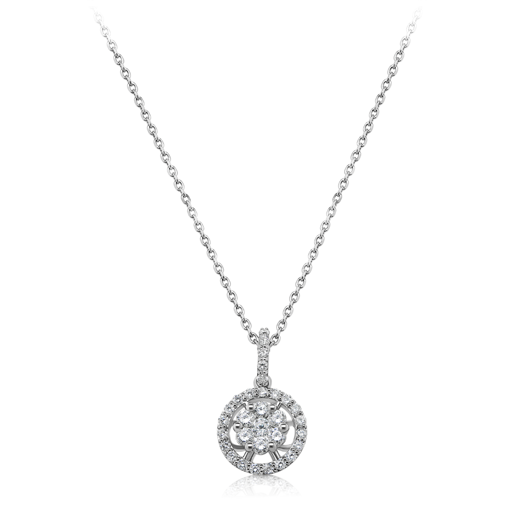 Lanț din aur alb de 14K și pandantiv cu Diamante naturale Round Brilliant de 0.36ct.