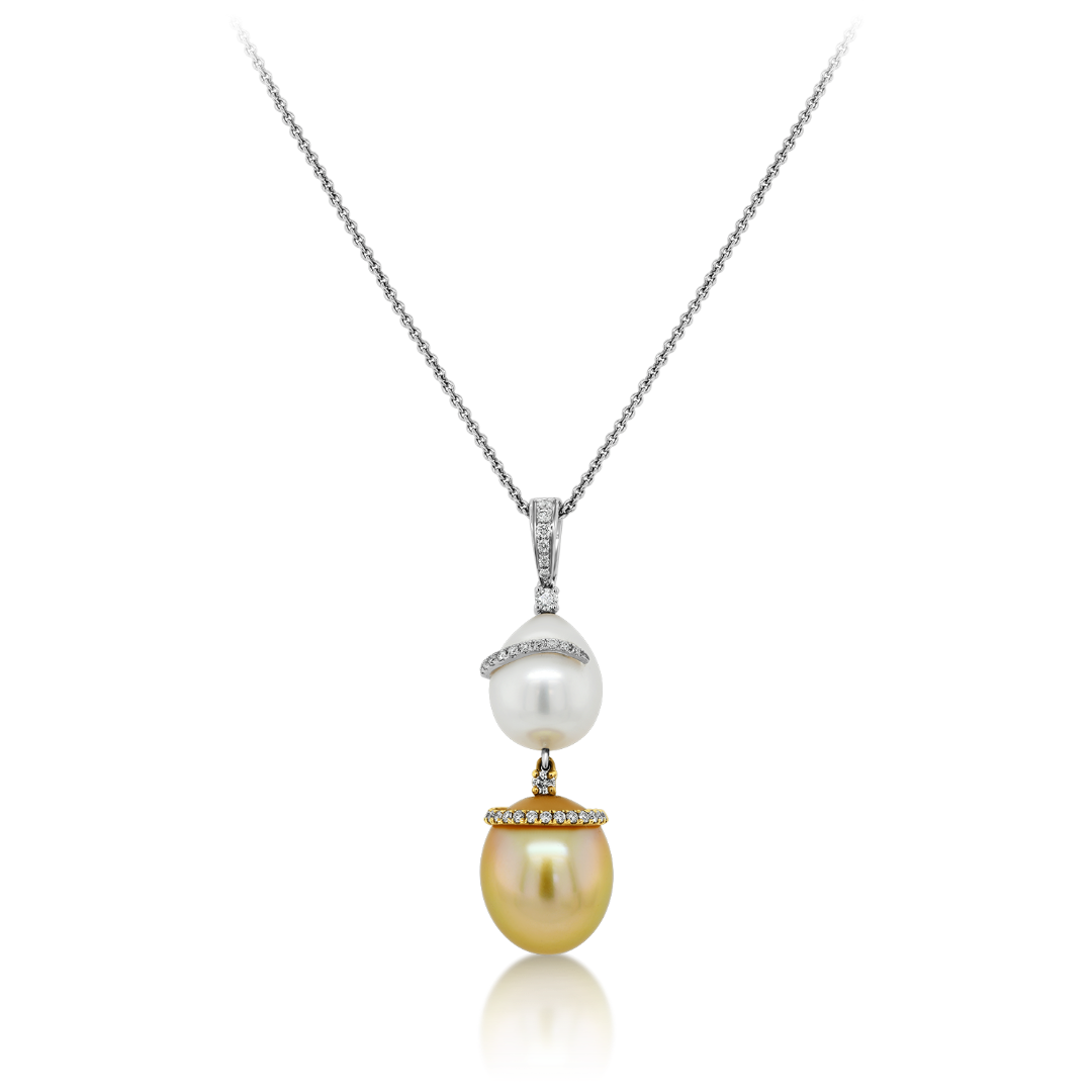 Lanț din aur alb de 18K și pandantiv cu Perle și Diamante naturale