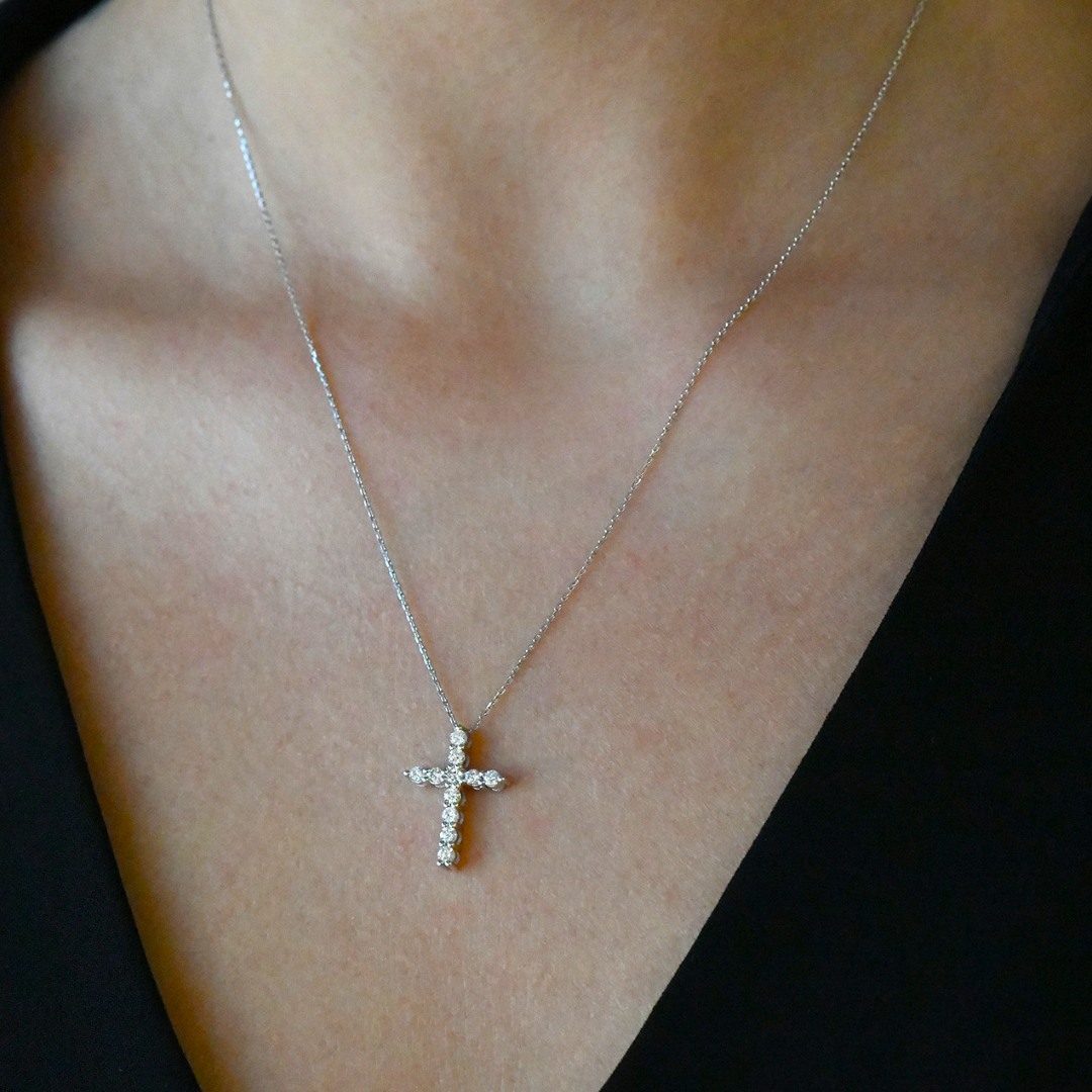 Lanț din aur alb de 18K și pandantiv cruce cu Diamante naturale Round Brilliant.