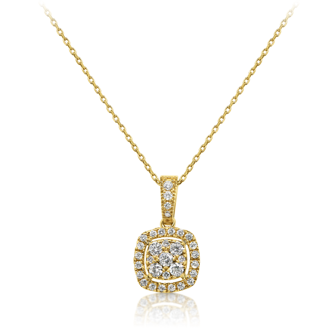 Lanț din aur galben de 18K și pandantiv cu Diamante naturale Round Brilliant.