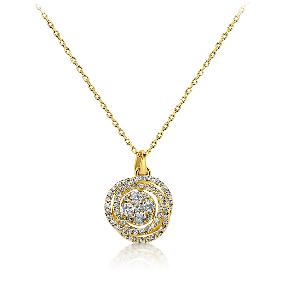 Colier din aur galben de 18K și pandantiv încrustat cu 69 de Diamante naturale albe de 0.35ct.