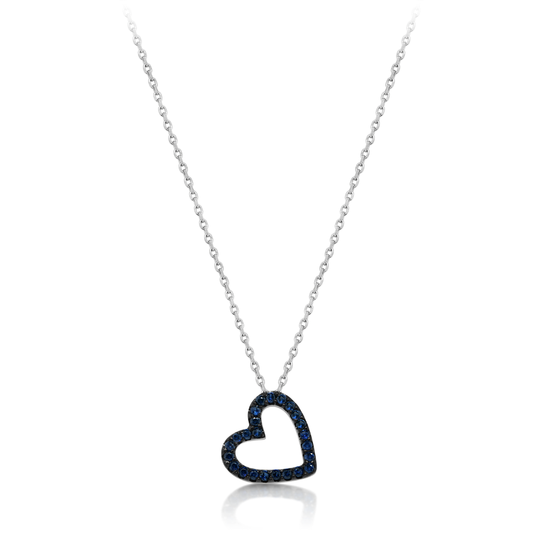Lanț din aur alb de 18K și pandantiv inimă cu 24 de Safire albastre de 0.17ct.