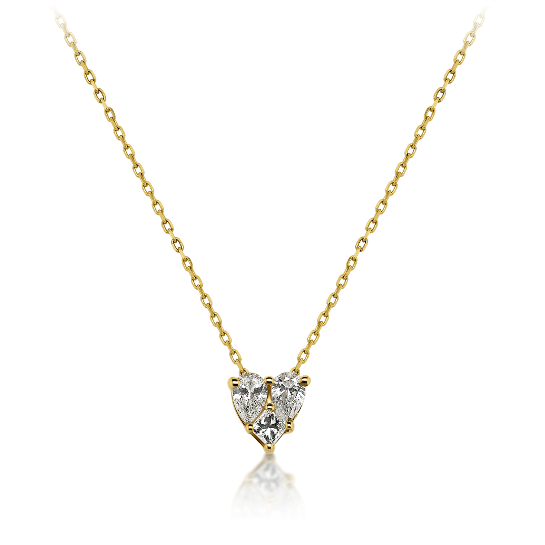 Colier în formă de inimă din aur galben de 18K, cu 3 Diamante naturale Round Brilliant.