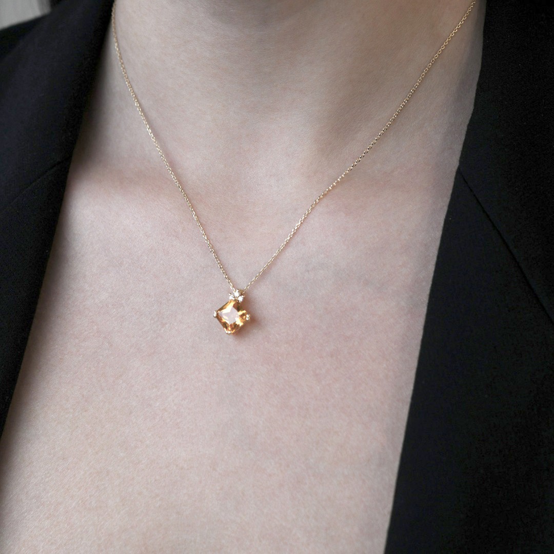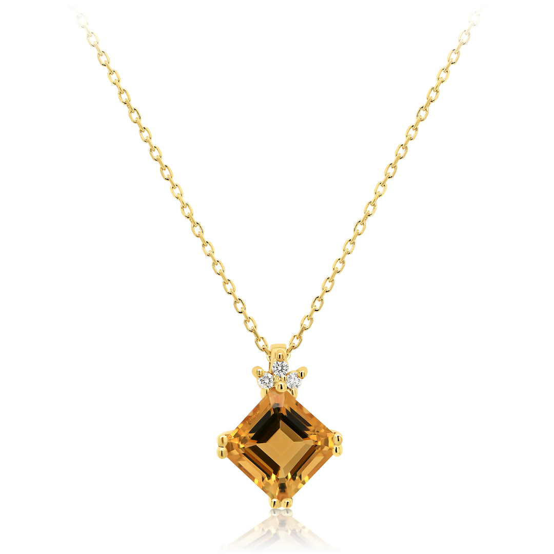 Lanț din aur galben de 18K și pandantiv cu Citrin și Diamante naturale