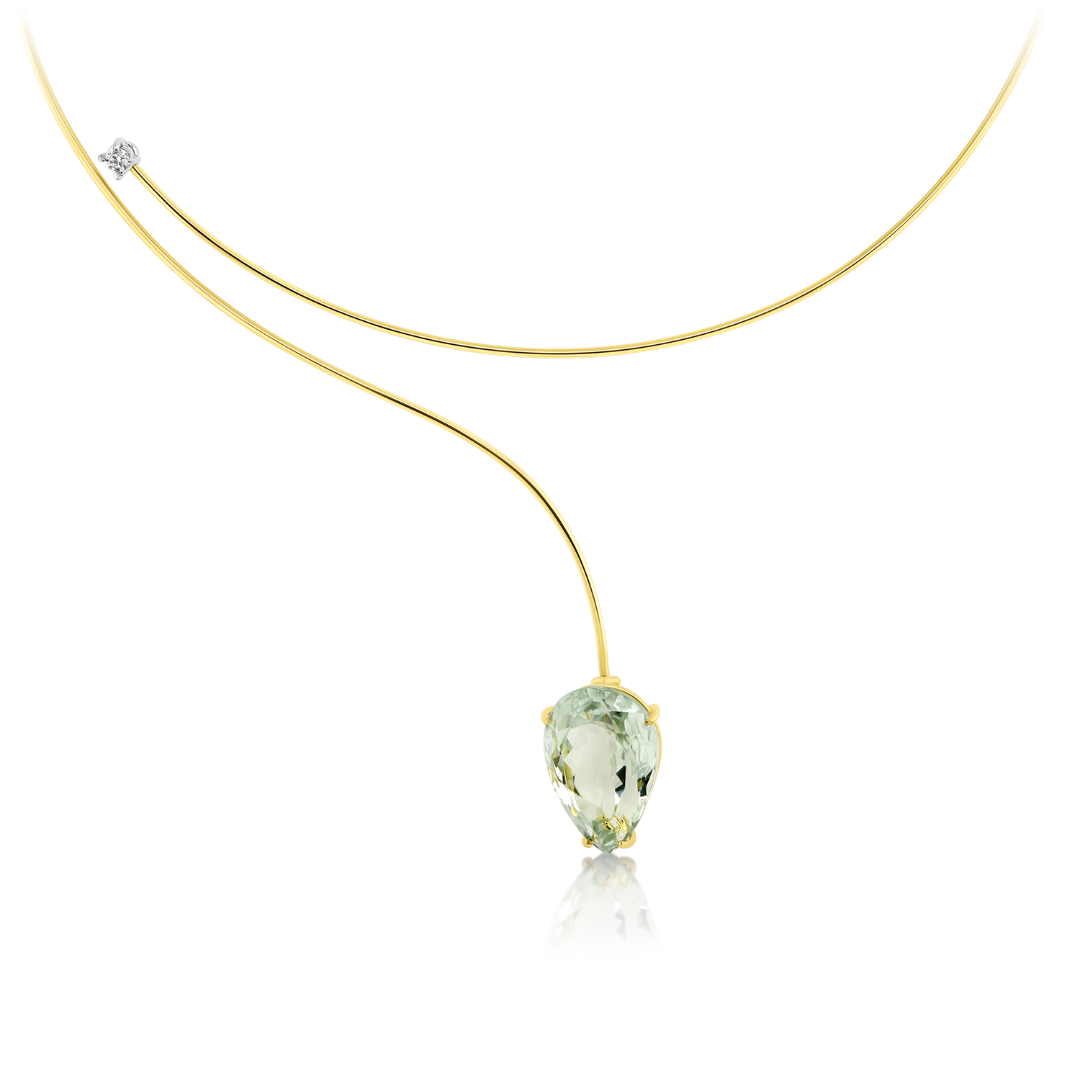 Colier din aur galben de 18K, cu Prasiolit și Diamant natural