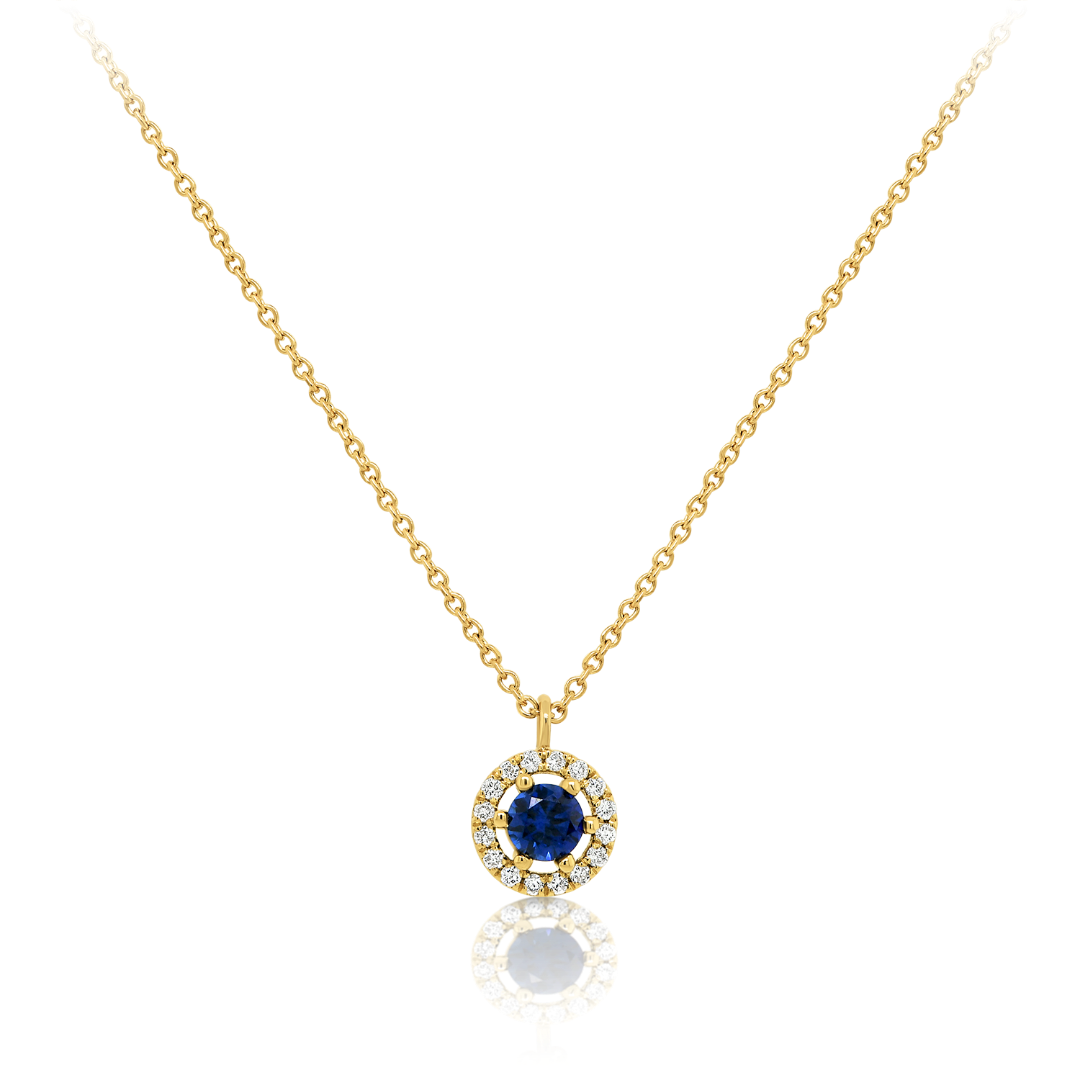 Colier din aur galben de 18K, cu Diamante și Safir albastru