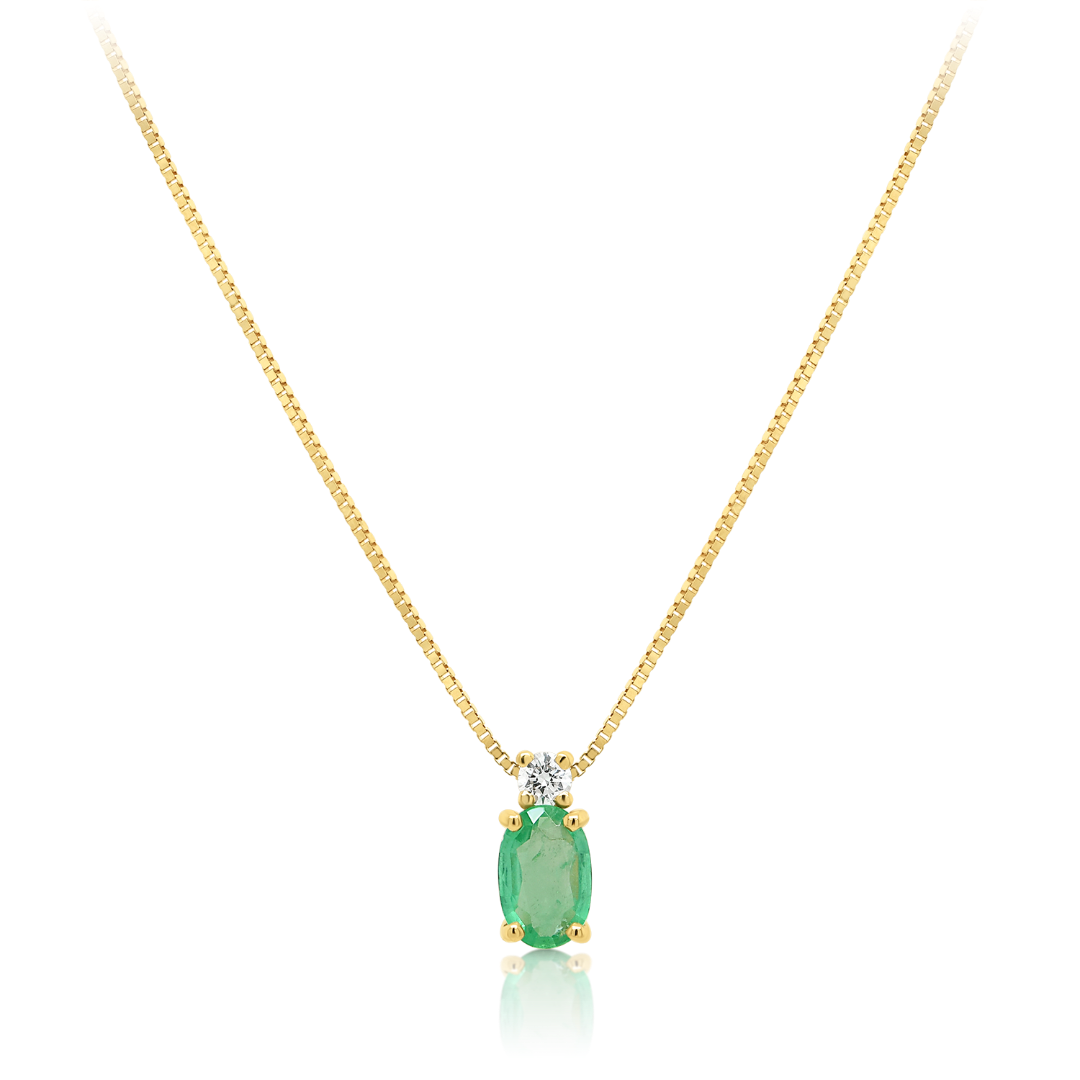 Lanț din aur galben de 18K și pandantiv cu Smarald și Diamant natural