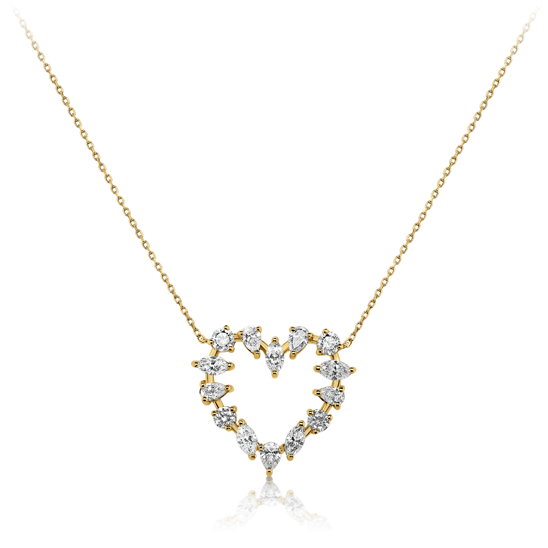 Colier din aur galben de 18K și pandantiv încrustat cu 14 Diamante naturale Round Brilliant, Marquise și Pear Cut, cu o greutate totală de 1.19ct.
