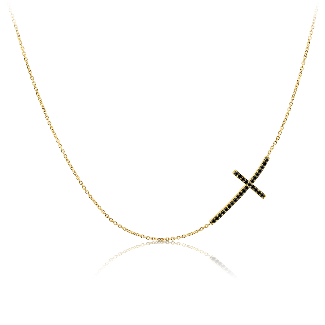 Lanț din aur galben de 18K și pandantiv cruce cu Diamante negre.