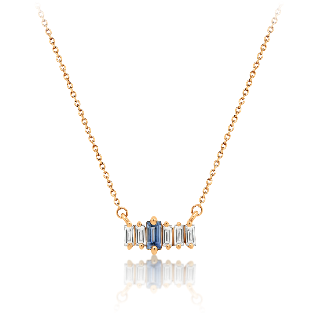 Lanț din aur roz de 18K și pandantiv cu Safir și Diamante naturale