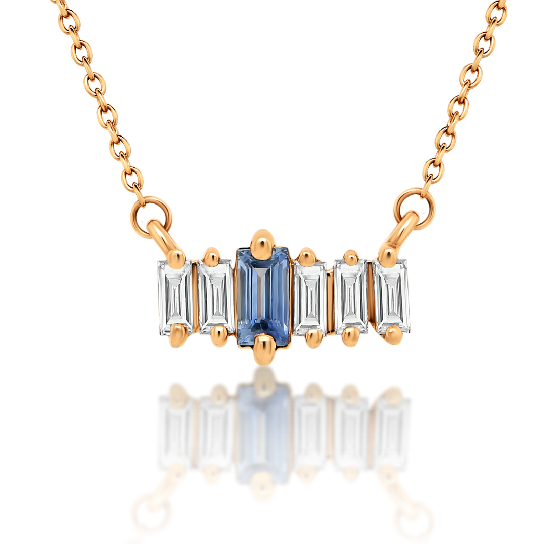 Lanț din aur roz de 18K și pandantiv cu Safir și Diamante naturale.