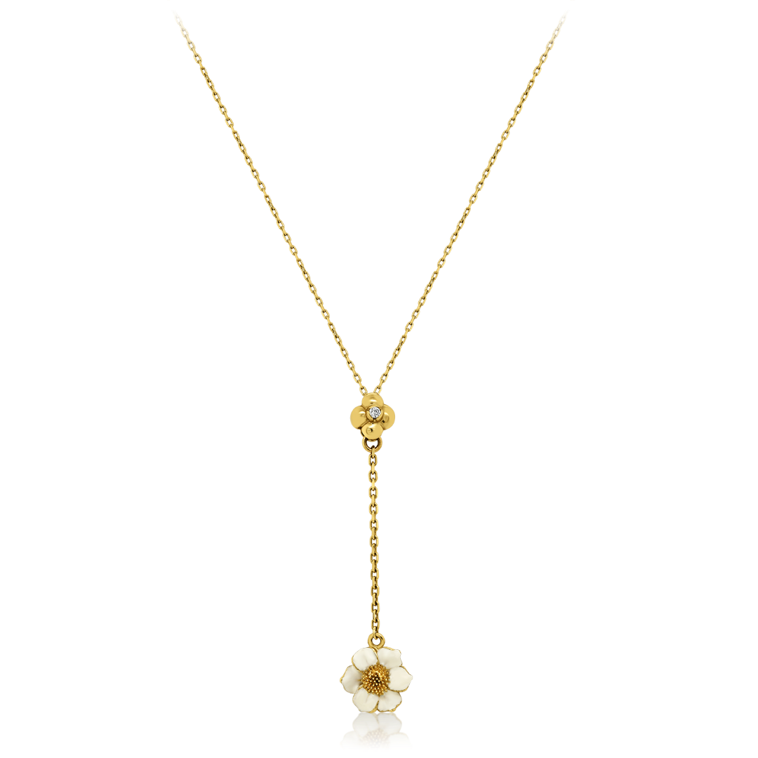 Colier din aur galben de 14K, cu pandantiv tip floare încrustat cu Diamant.