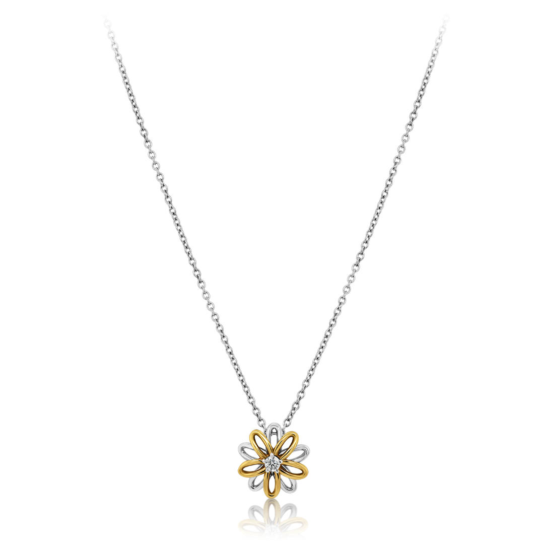 Lanț din aur alb de 18K și pandantiv încrustat cu Diamant natural