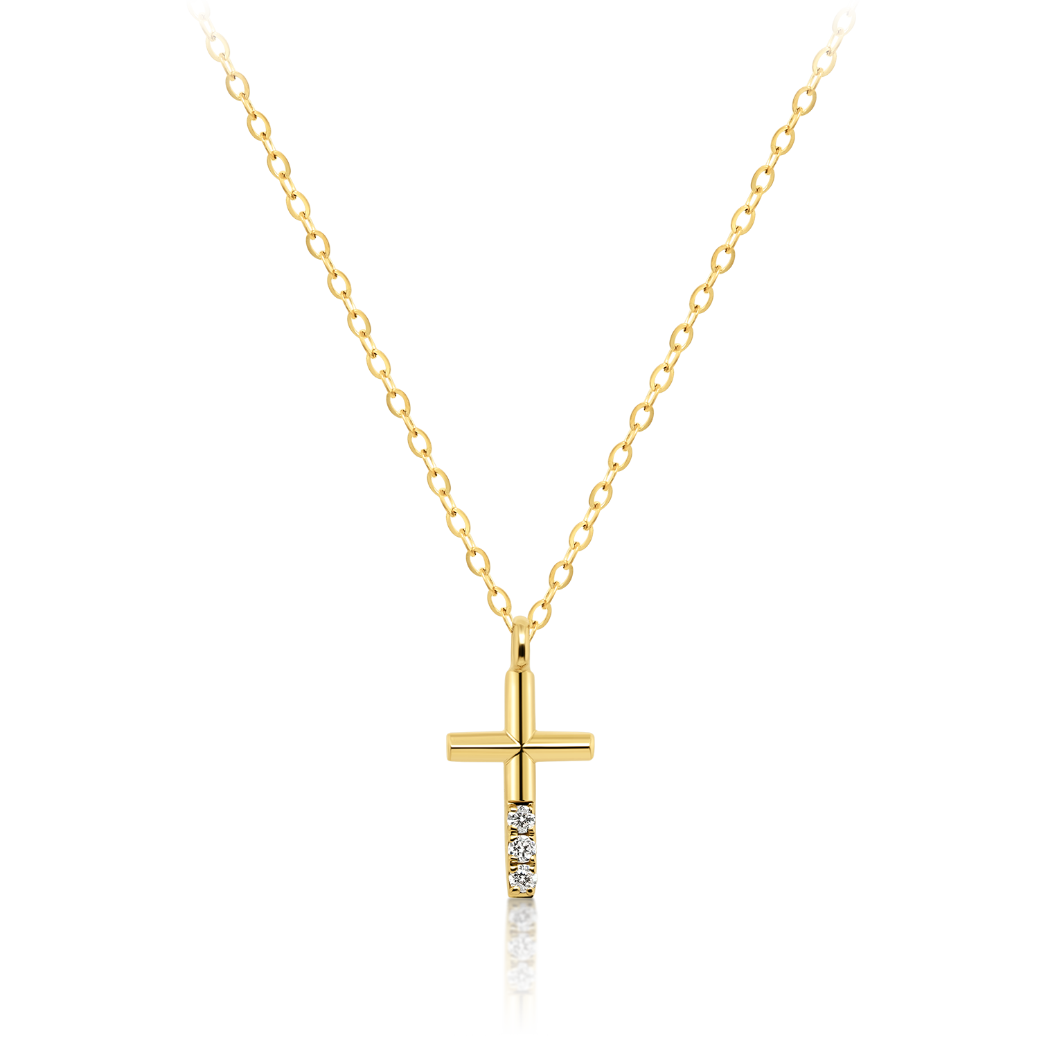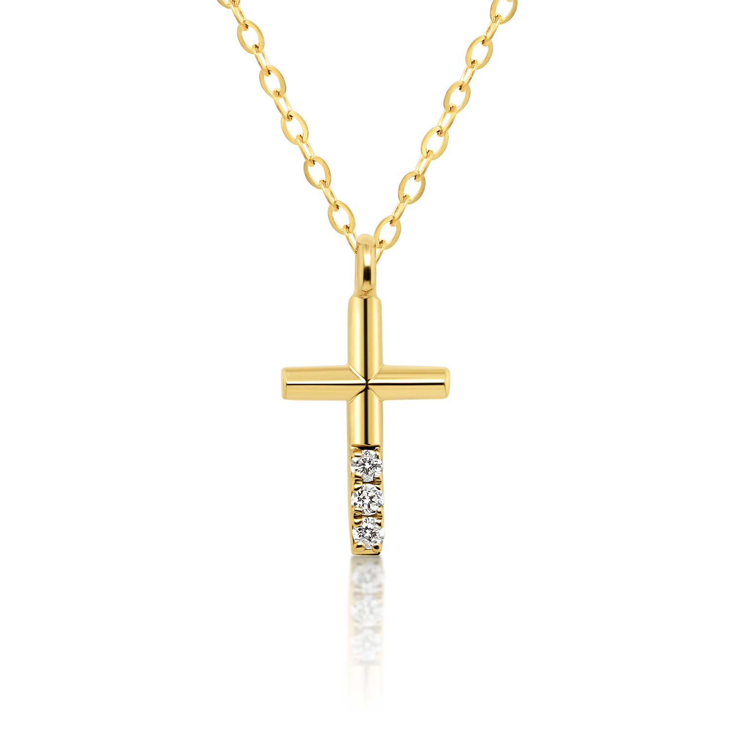 Lanț cu pandantiv cruce din aur galben de 18K cu Diamante naturale