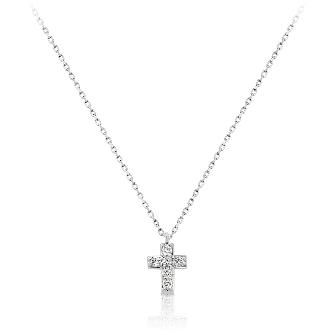 Lanț cu pandantiv cruce din aur alb de 14K cu 6 Diamante naturale de 0.16ct.