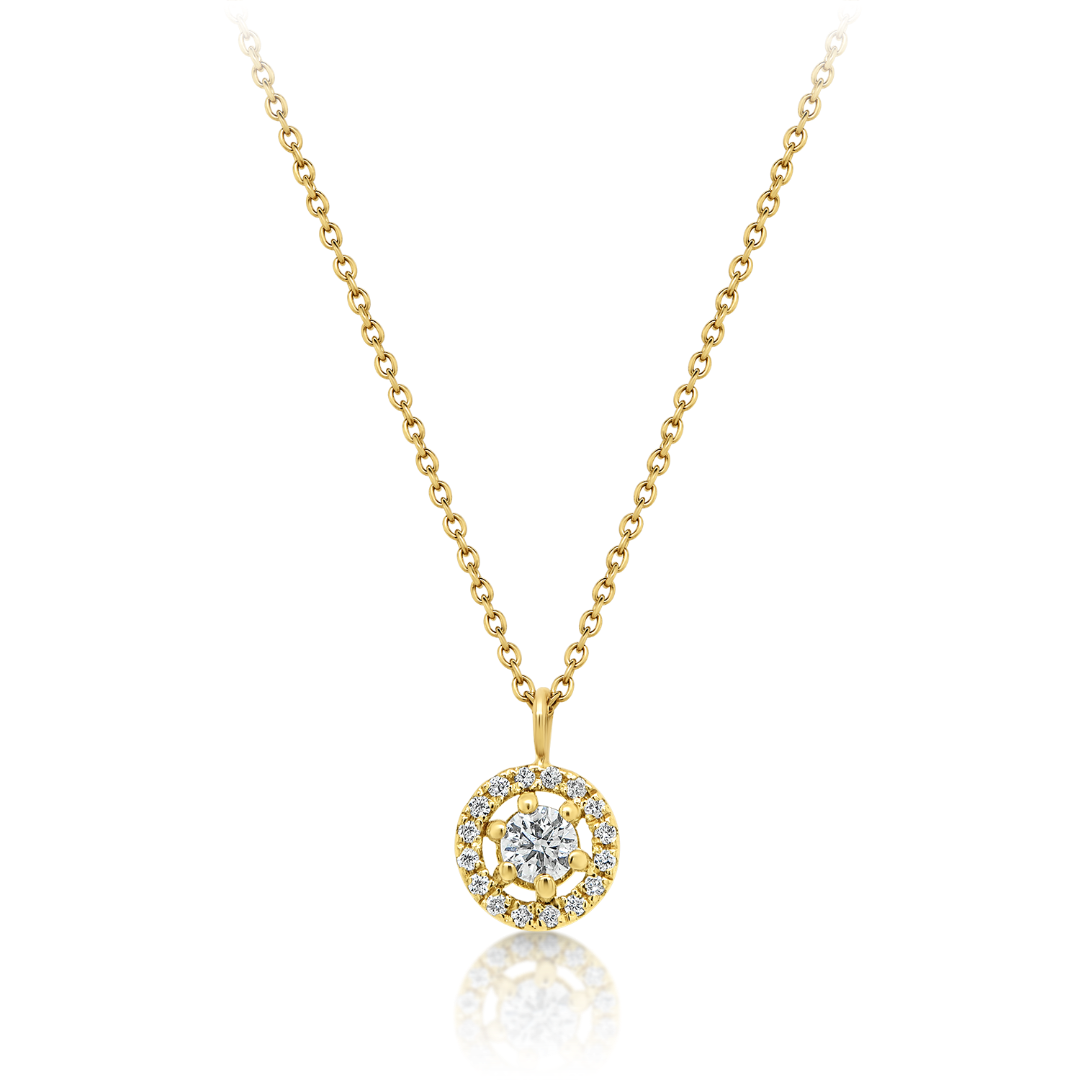 Lanț din aur galben de 18K și pandantiv cu Diamante Round Brilliant naturale.