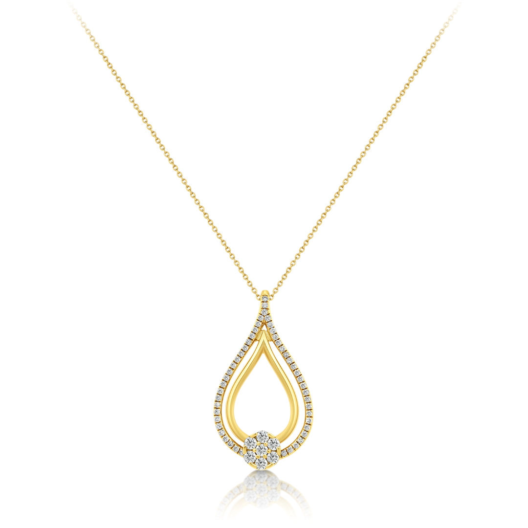 Lanț cu pandantiv din aur galben de 18K și Diamante naturale