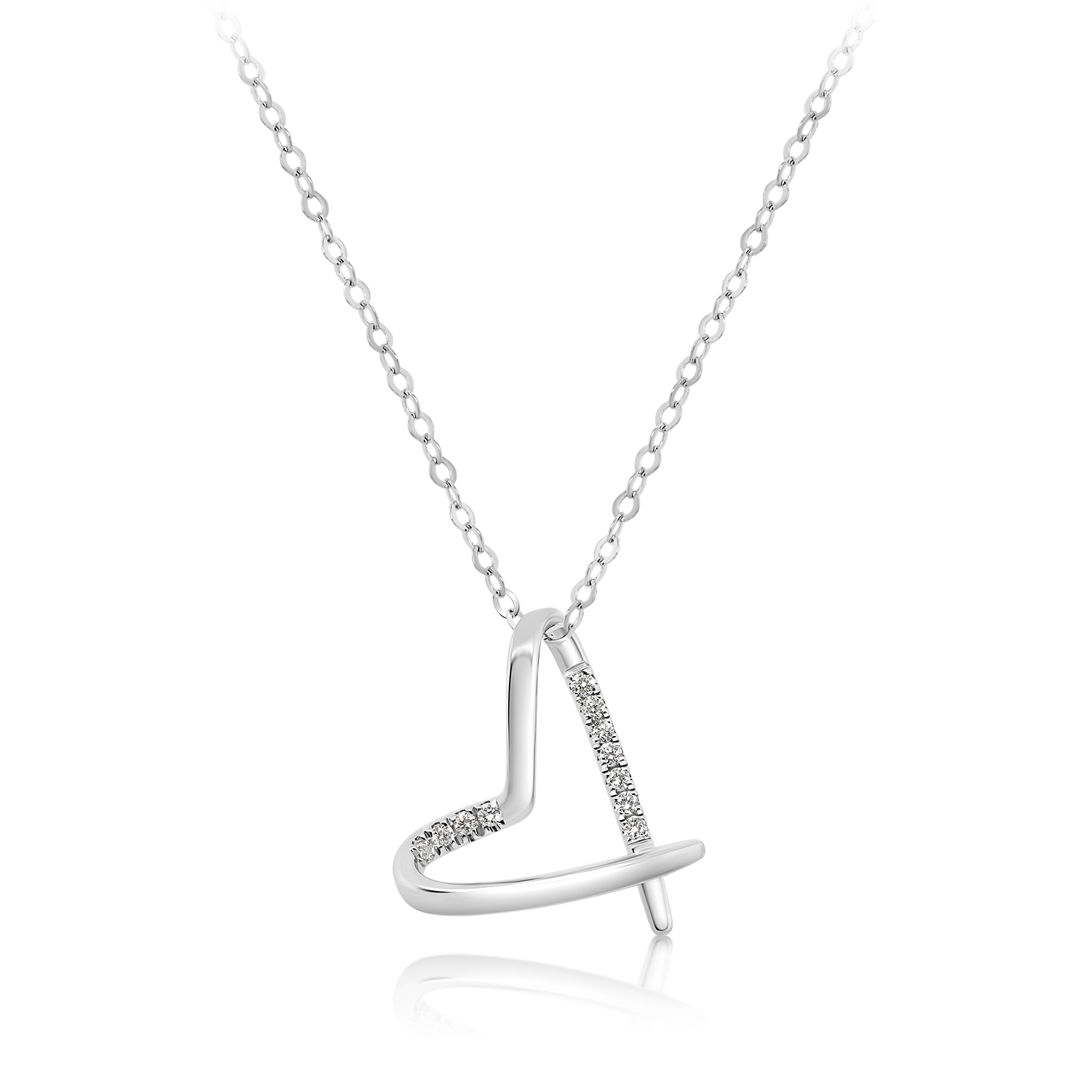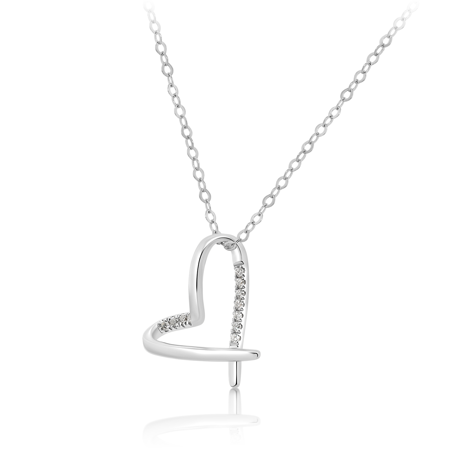 Lanț cu pandantiv inimă din aur alb de 18K cu Diamante naturale