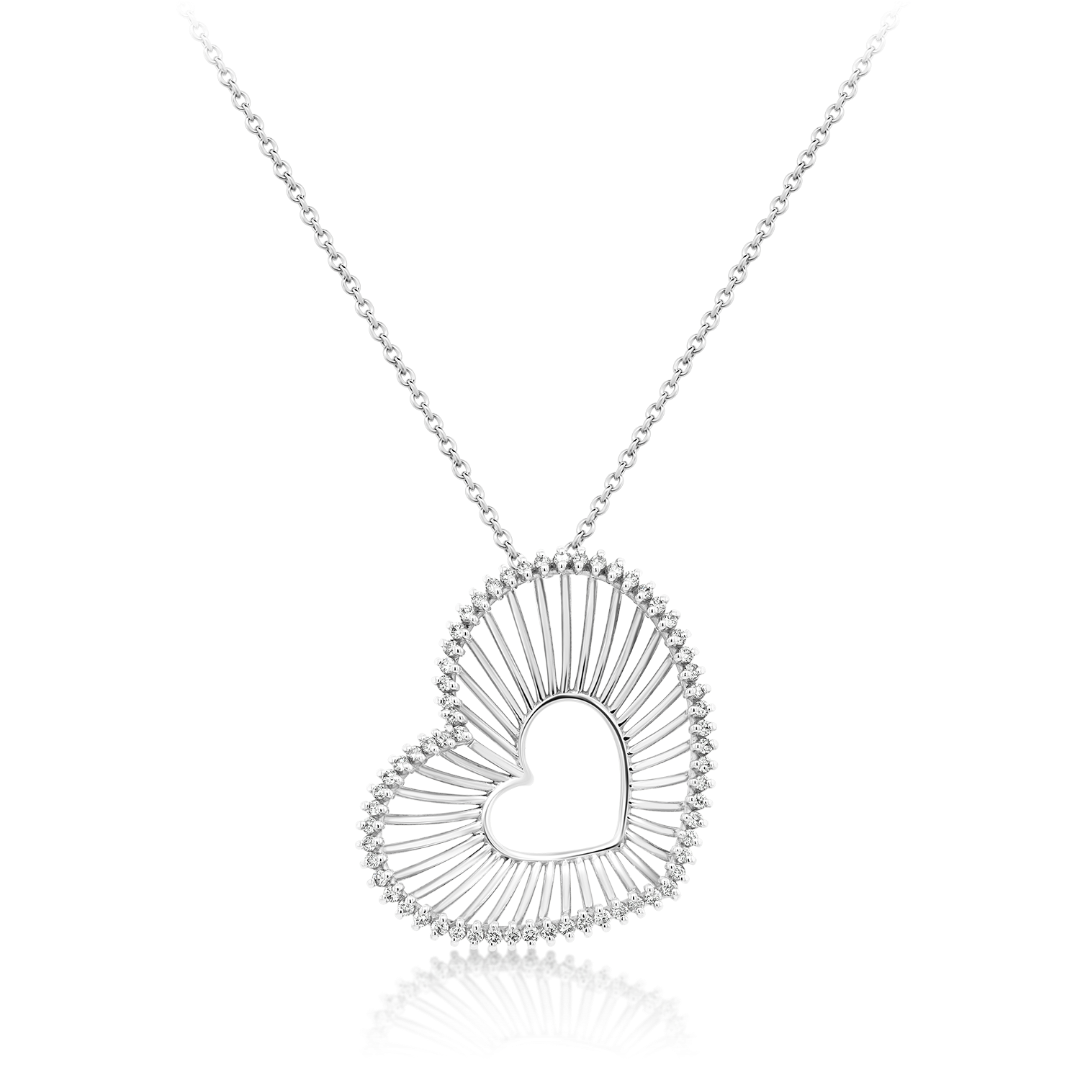 Lanț din aur alb de 18K și pandantiv inimă cu Diamante naturale