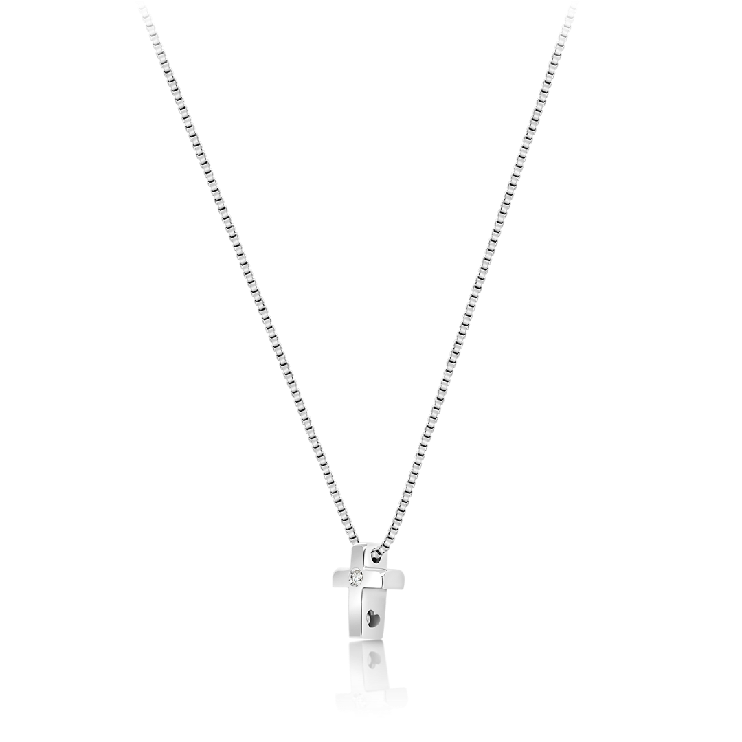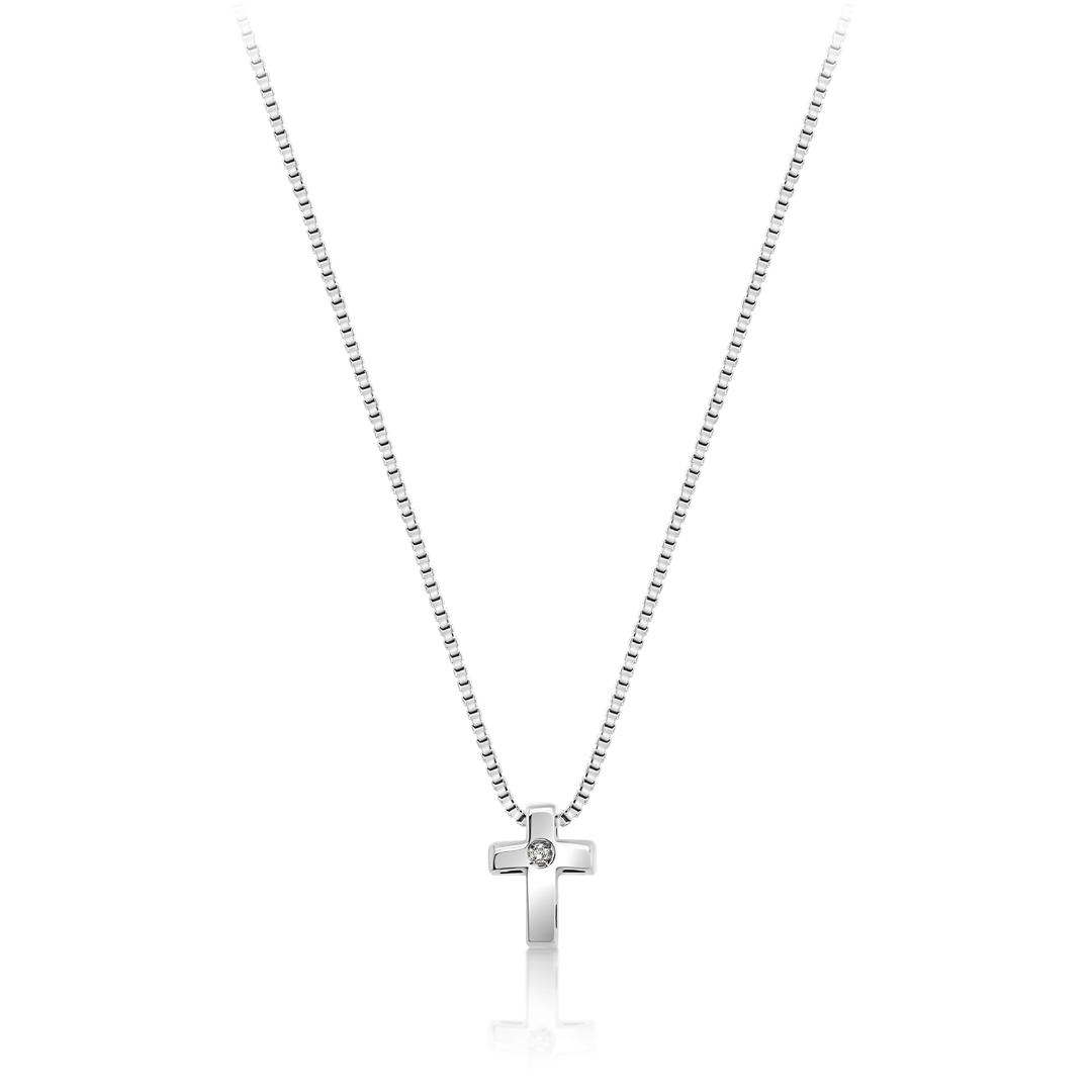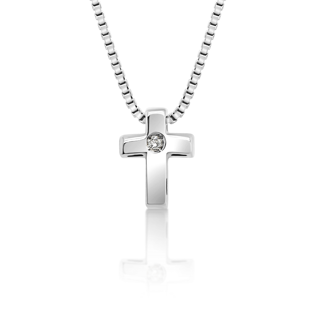 Lanț din aur alb de 14K și pandantiv cruce cu Diamant natural Round Brilliant.