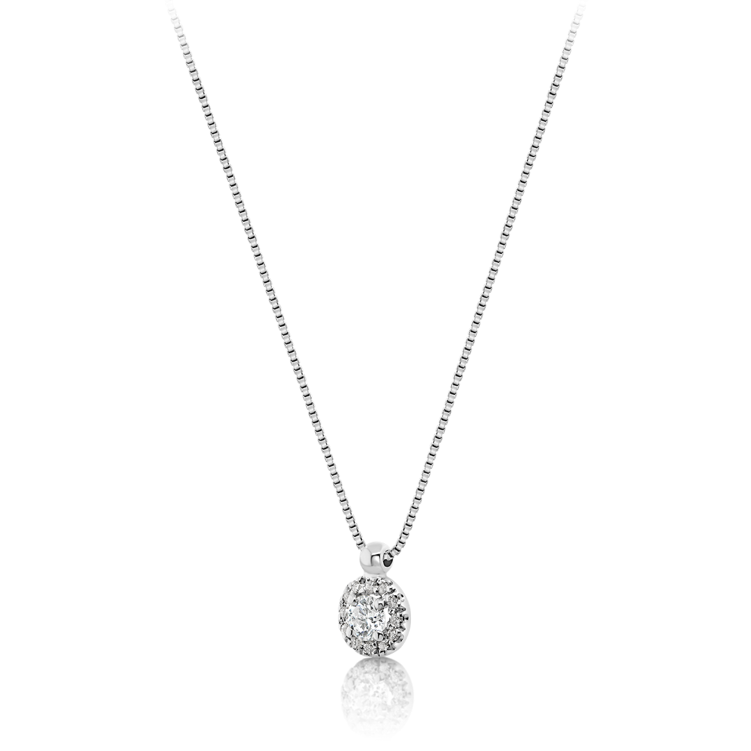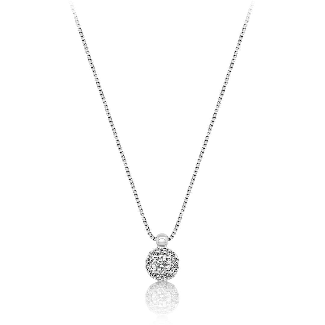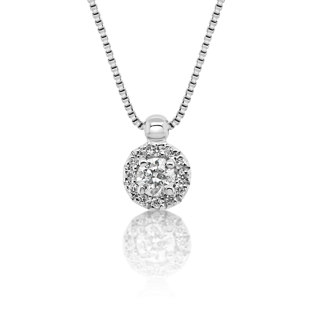 Lanț din aur alb de 14K și pandantiv cu Diamante naturale Round Brilliant.