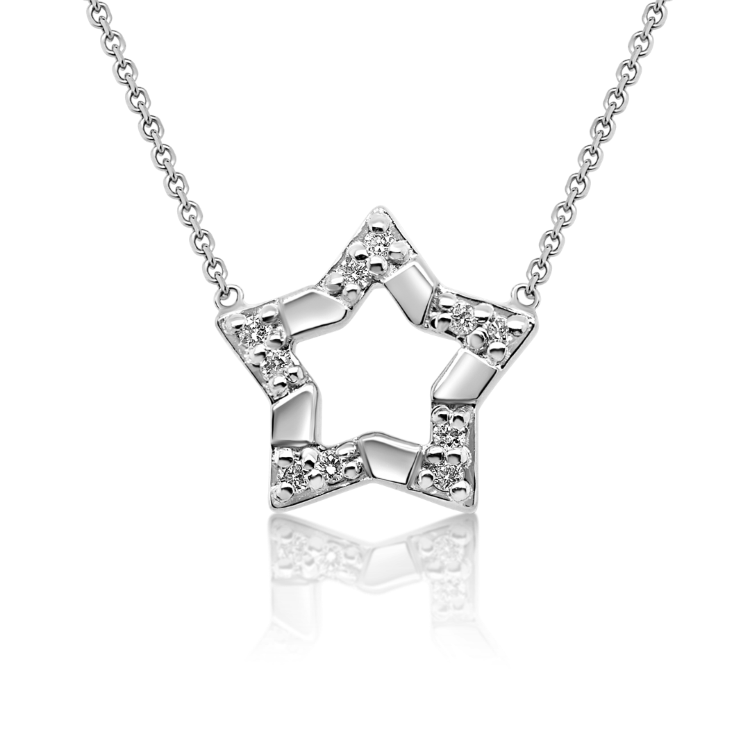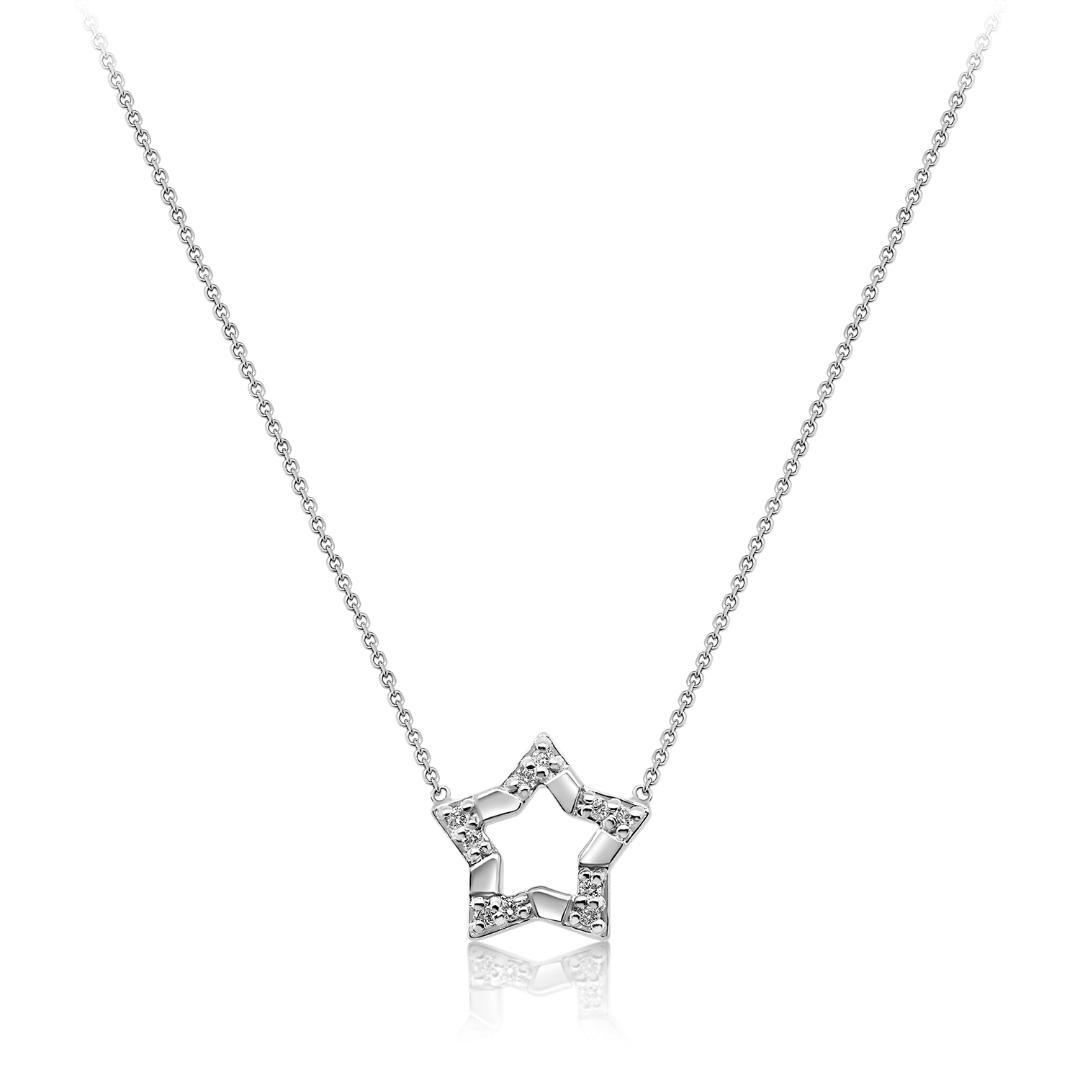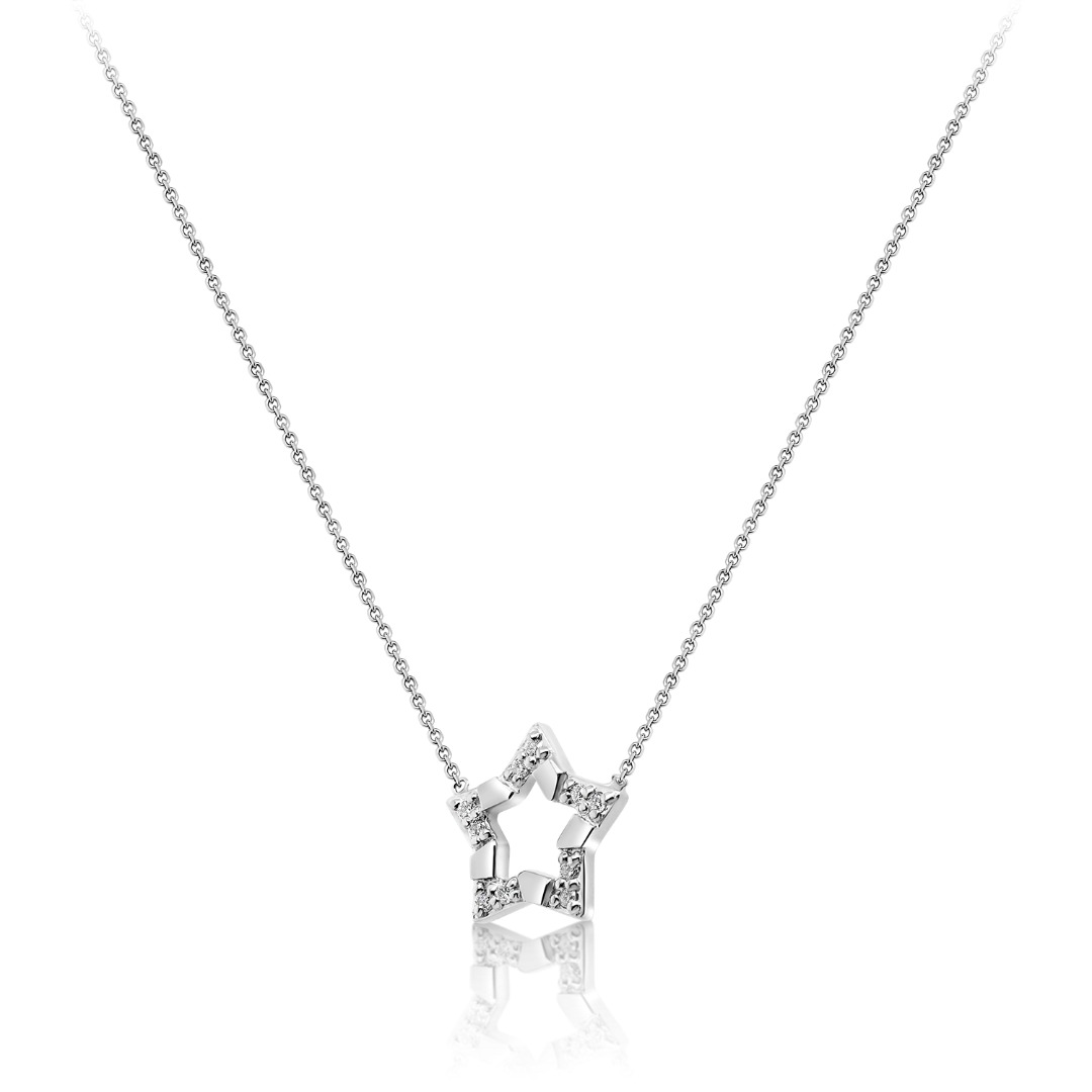 Lanț din aur alb de 14K și pandantiv stea cu Diamante naturale Round Brilliant.