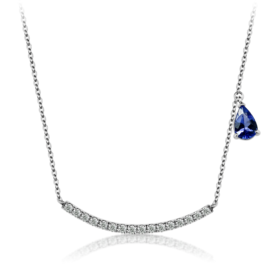 Lanț din aur alb de 18K și pandantiv cu Diamante și Tanzanit