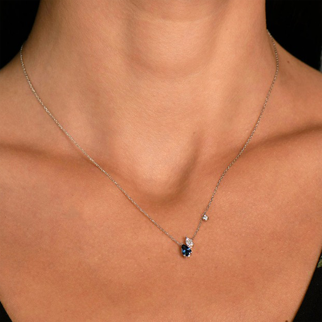 Lanț din aur alb de 18K, cu Safir albastru și Diamante naturale