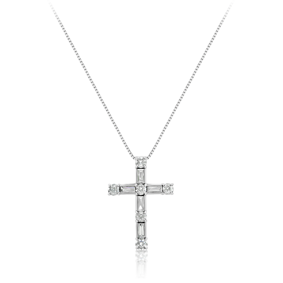Lanț din aur alb de 18K și pandantiv cruce cu Diamante naturale