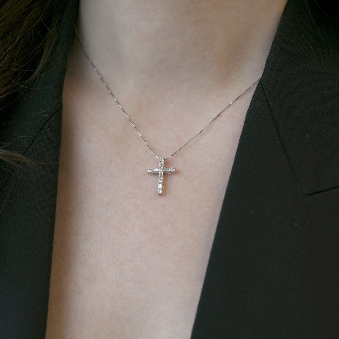 Lanț din aur alb de 18K și pandantiv cruce cu Diamante naturale.