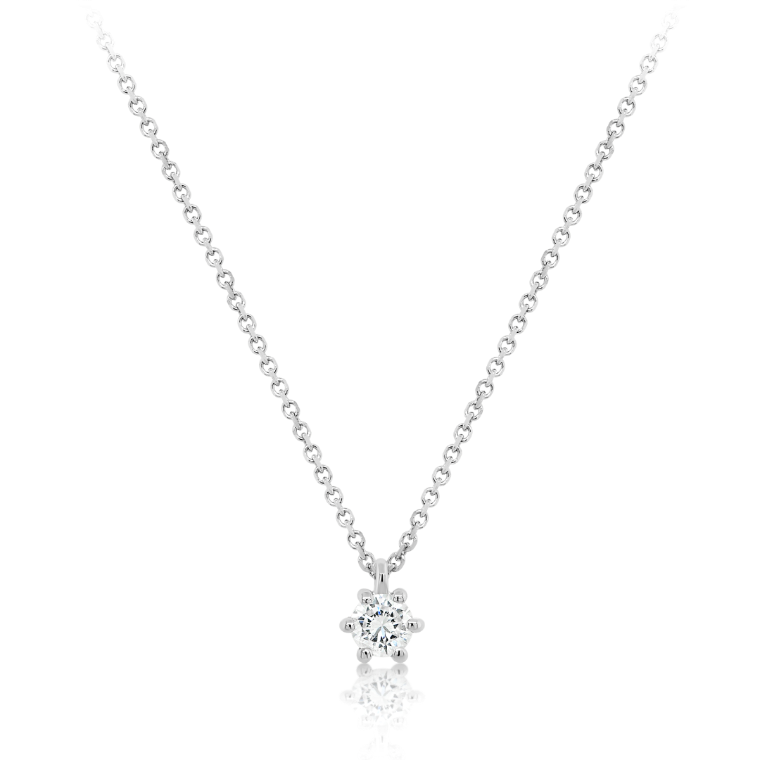Lanț din aur alb de 18K și pandantiv cu un Diamant natural Round Brilliant.
