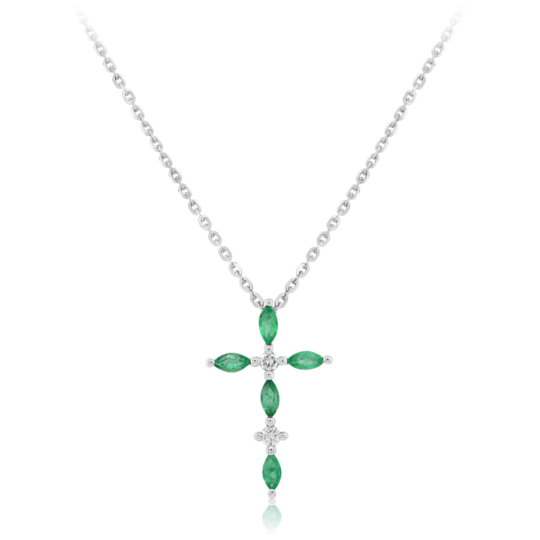 Lanț cu pandantiv din aur alb de 18K, cu Diamante naturale și Smaralde