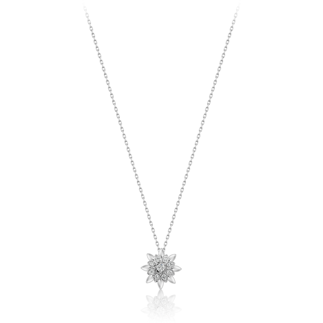 Lanț din aur alb de 18K și pandantiv cu Diamante naturale Round Brilliant.