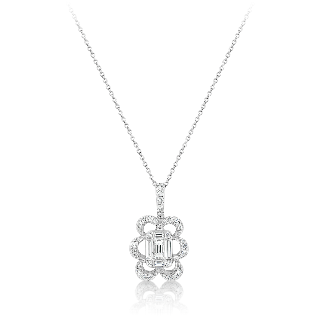 Lanț din aur alb de 18K si pandantiv cu 37 de Diamante Round Brilliant de 0.20ct și 5 Diamante Baquette de 0.30ct.