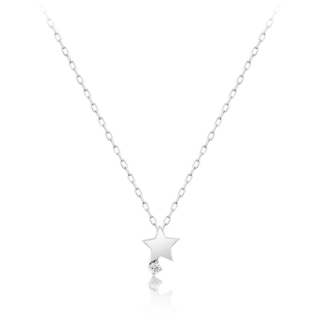Lanț din aur alb de 18K și pandantiv cu Diamant natural