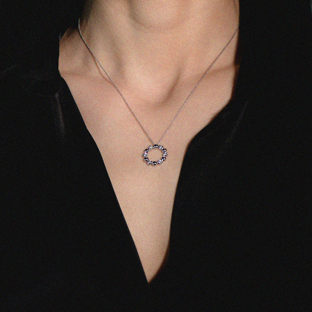 Lanț din aur alb de 18K și pandantiv cu Diamante naturale