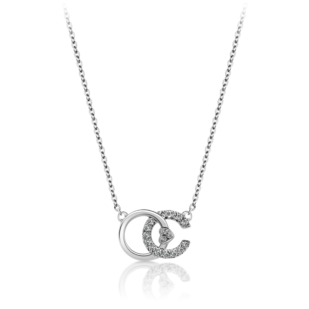 Lanț din aur alb de 18K și pandantiv încrustat cu Diamante naturale Round Brilliant de 0.08ct.